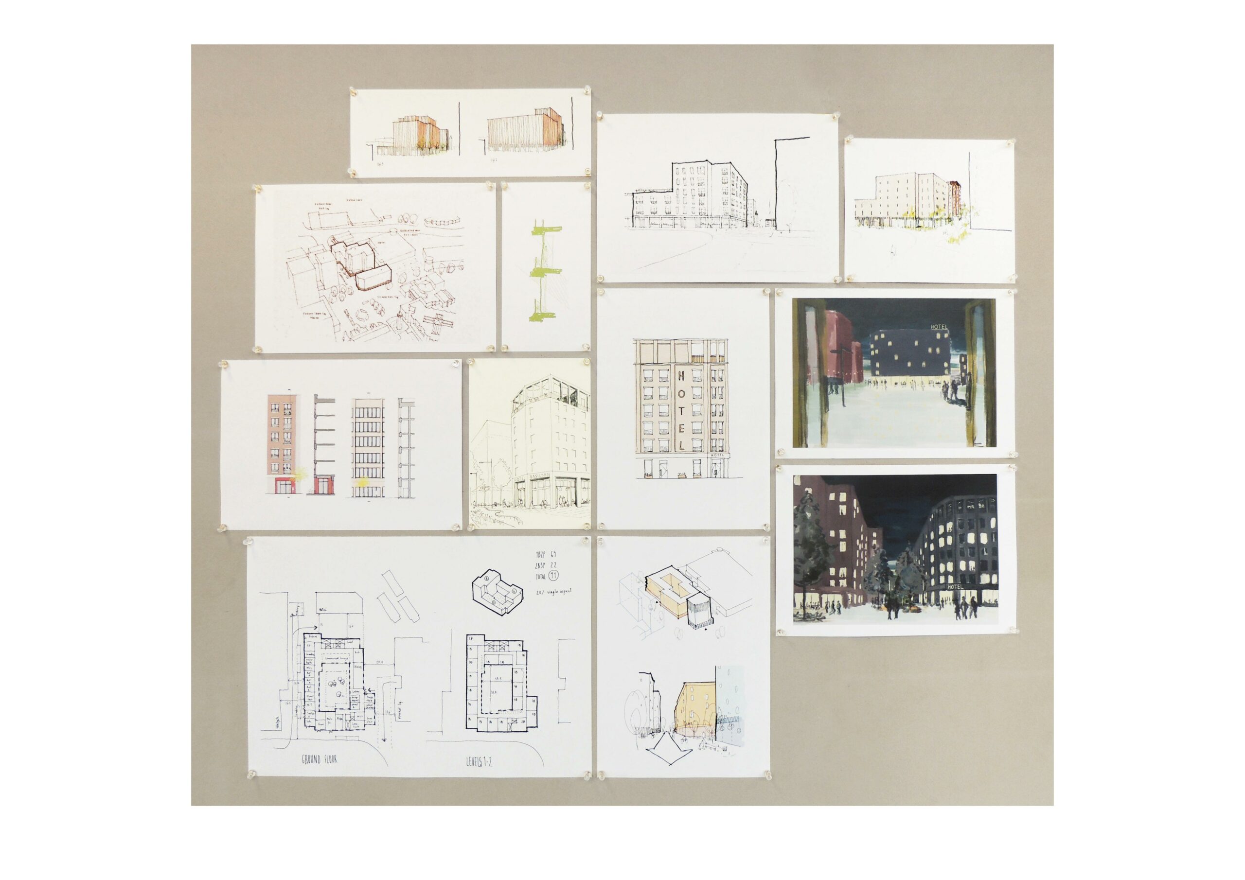 Our proposal also includes the addition of a 7-storey hotel chamfered along Fodderwick, defining the north of the site next to a newly proposed Pocket Square. The simple and elegant building is composed by a rhythm of piers defining each bay, which provides a strong civic frontage to St Martin’s Square and references the language of the adjacent St Martin’s Church. The ground floor offers a public commercial space while a publicly accessible rooftop bar frames views over the Town Centre.