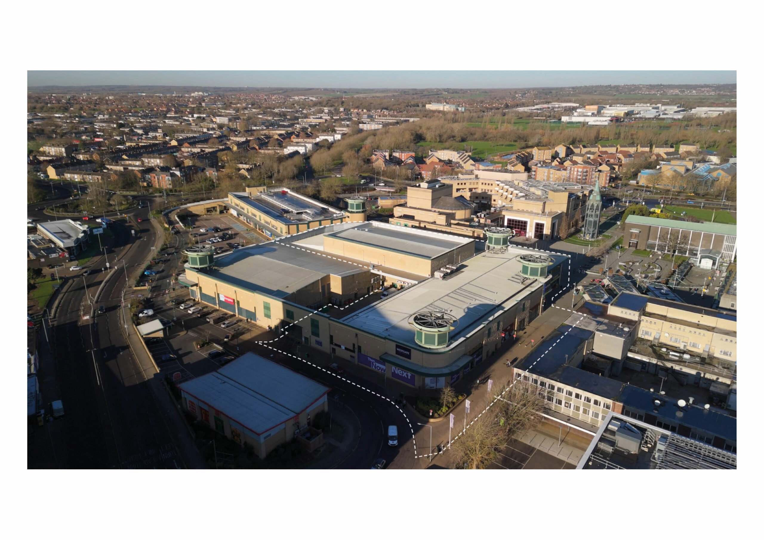 The Westgate Shopping Park, a largely vacant retail warehouse, currently restricts key routes through the site including the original east-west link established in the New Town and reduces permeability west of St Martin’s Square. As part of Phase 1, this building will be demolished to reinstate these routes and create an outdoor meanwhile use space for community use.