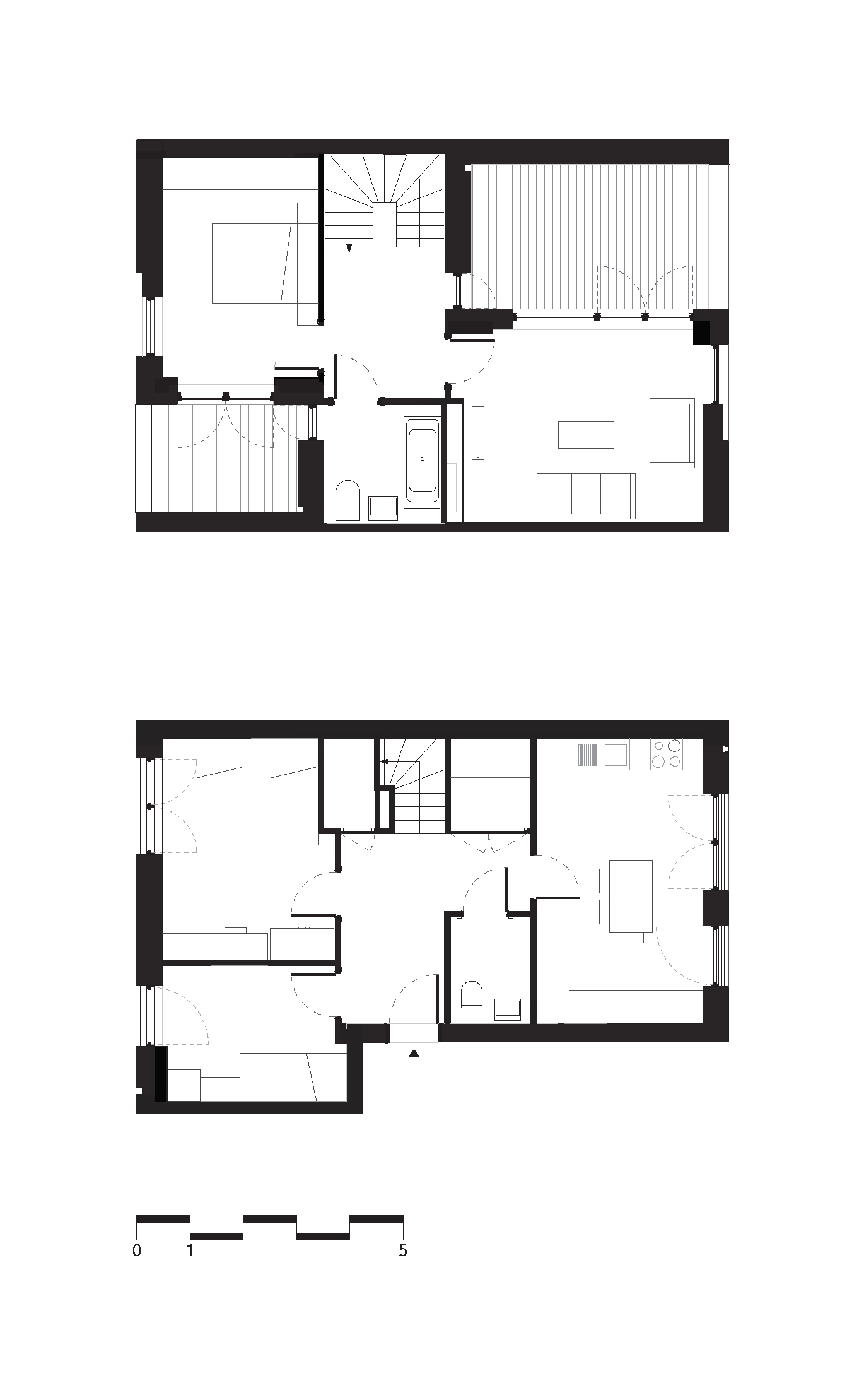 The project is comprised of two buildings that were conceived together as an urban block that would contribute to a strong and consistent neighbourhood identity. Each is then articulated independently with distinct typologies, contrasting roof forms and variations in brick tone that provide individual character.