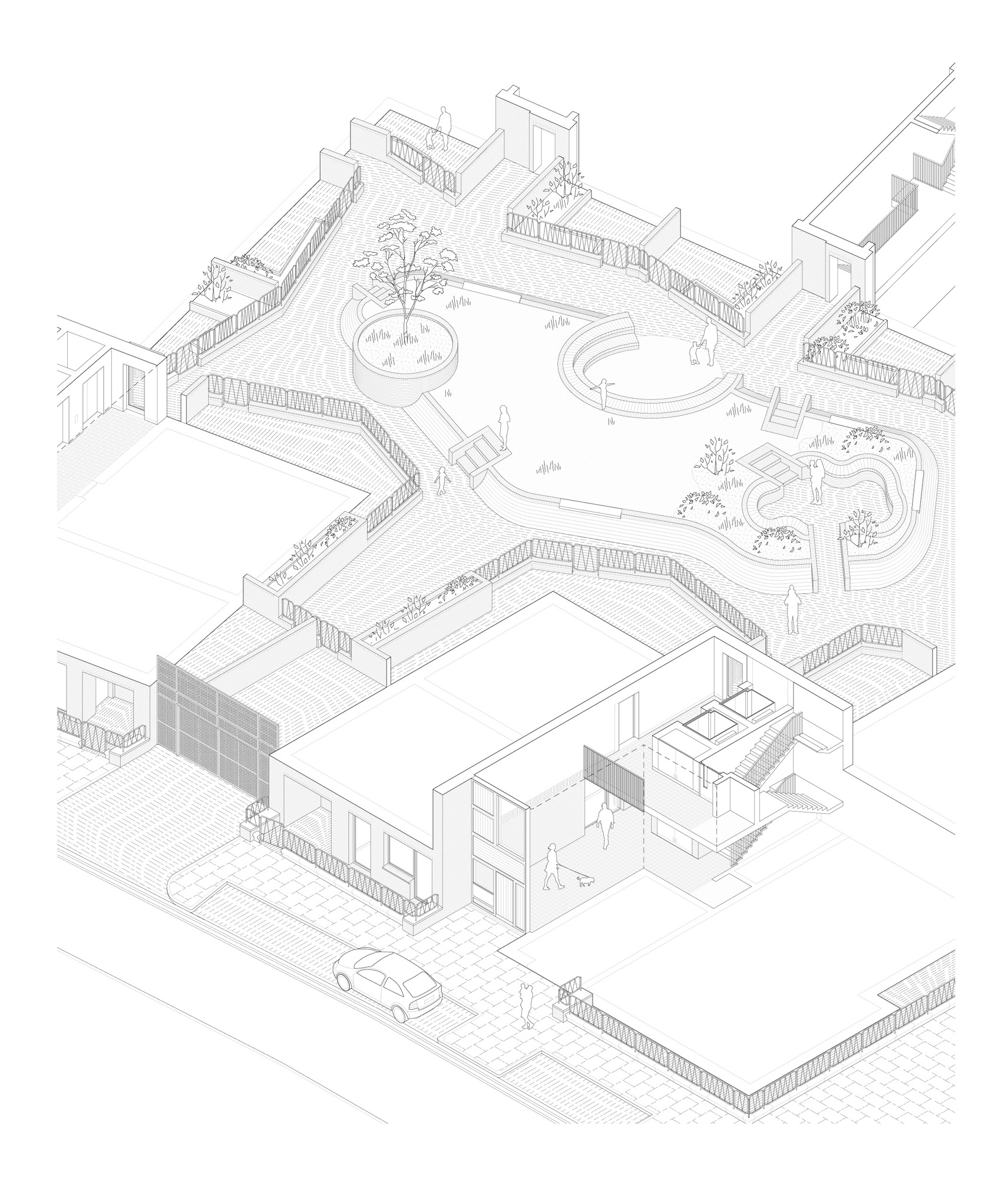 Extensive soft landscaping is woven throughout the revitalised estate neighbourhood, with native trees and shrubs improving the ecology of the area, urban climate resilience and the everyday experience of people who live there.