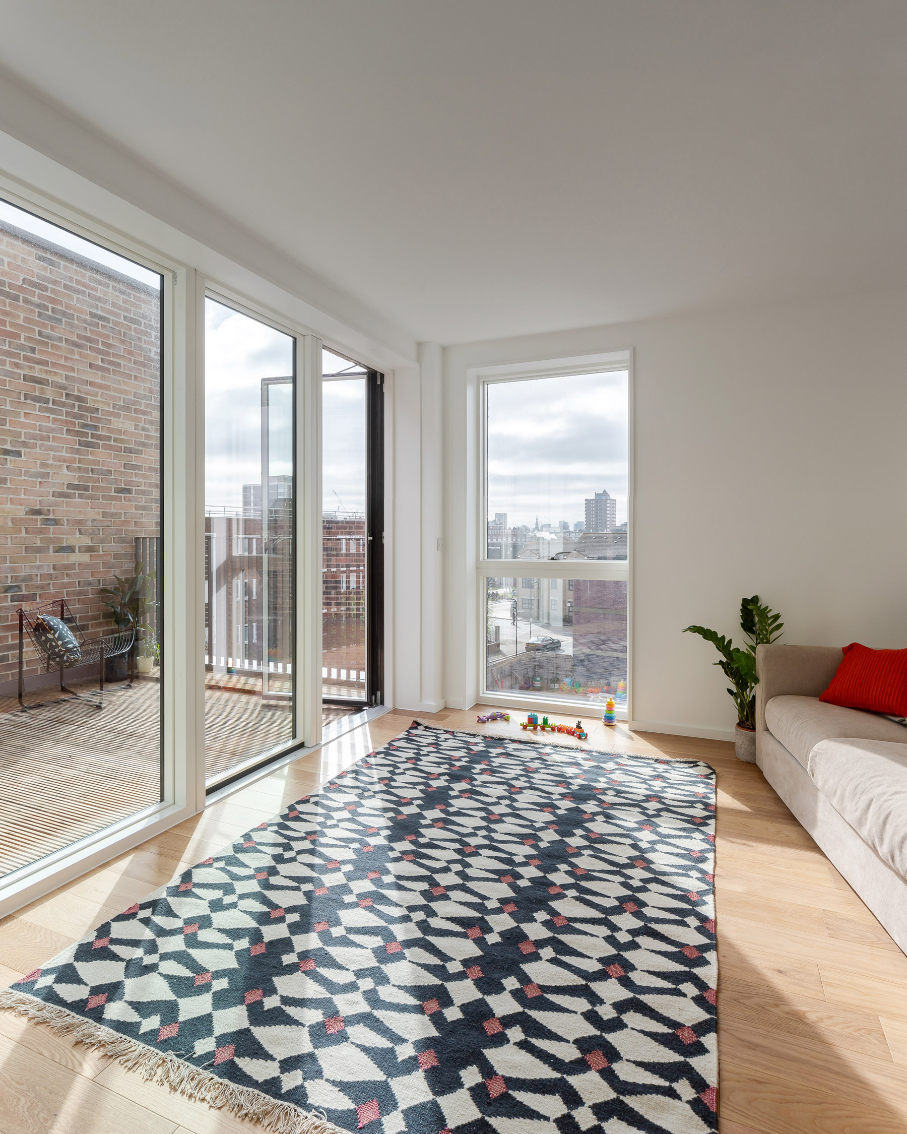 To the north-west corner of the project is Dorchester House, a 7-storey residential block with retail that features a striking seamed-copper roof and metal balconies that take influence from nearby industrial warehouse buildings. At ground floor where the building addresses a corner junction at the edge of the neighbourhood there is space for a local shop.
