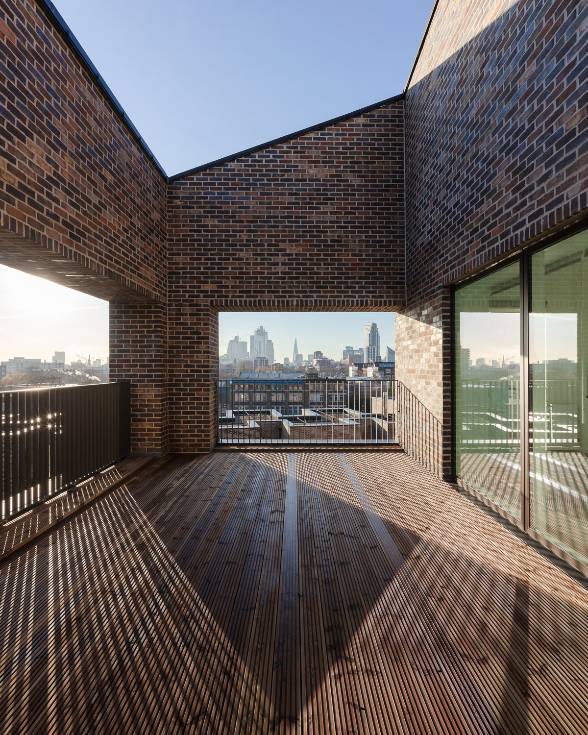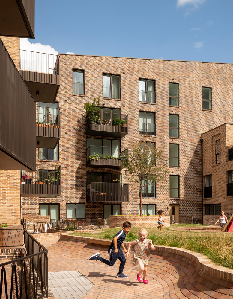 A mixed collection of building typologies at Branch Place contributes to the variety of the townscape of the new neighbourhood, but also provides a much-needed mix of dwelling types. The buildings occupy key plots within the masterplan’s network of public streets and pathways which improve wayfinding and establish connections to the local area, with an east-west route reinstating the historic Colville Street through the heart of the estate and a set of north-south pathways opening up pedestrian links between Shoreditch Park and the Regent’s Canal.