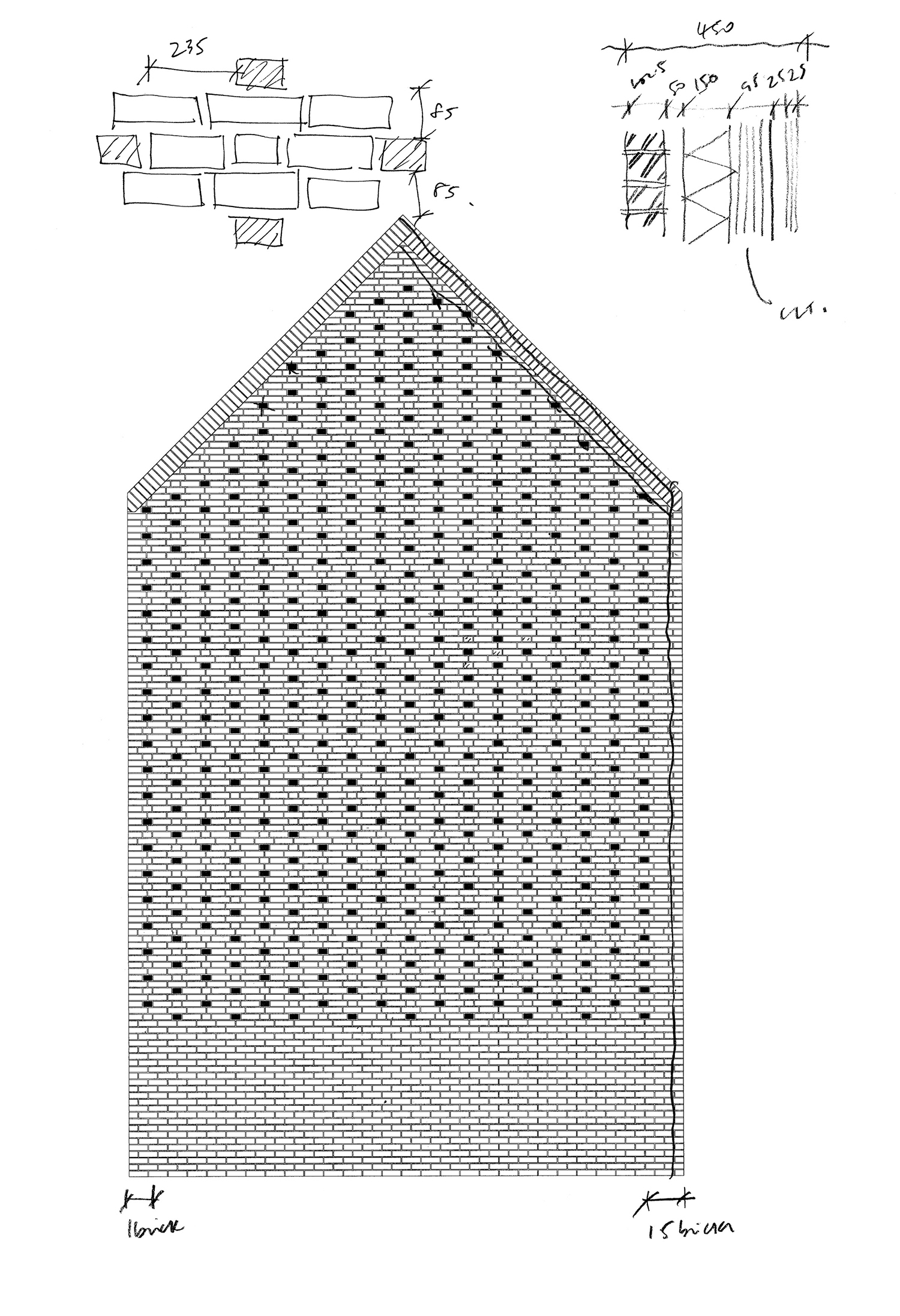 To reflect the sites its semi-rural context, the project is conceived as a field of barn-houses with a range of 2-and 3-storey dwellings varying in width and height to accommodate a range of interior layouts within. The considered orientation of dwellings with gable ends facing east and west provides a buffer to the nearby A10 highway, with all dwellings designed to maximise southern aspect and benefit from increased natural light and enhanced thermal performance. Pitched roofs and strong gable ends define the character of the buildings, along with a paired-back palette of brickwork and the presence of timbre louvres which recall agricultural forms. Diamond and staggered protruding brickwork adds texture to blank facades and articulates and enhances the simple domestic forms.