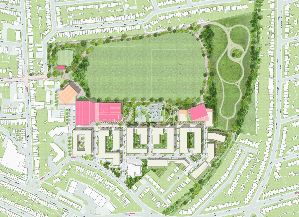 Byron Quarter is a leisure-led masterplan in Harrow, North-West London, that places the health and wellbeing of its community at its heart. Located on a prominent site on the edge of the Byron Recreation Ground, our design reimagines and revitalises the park edge with a collection of upgraded sports and community facilities.