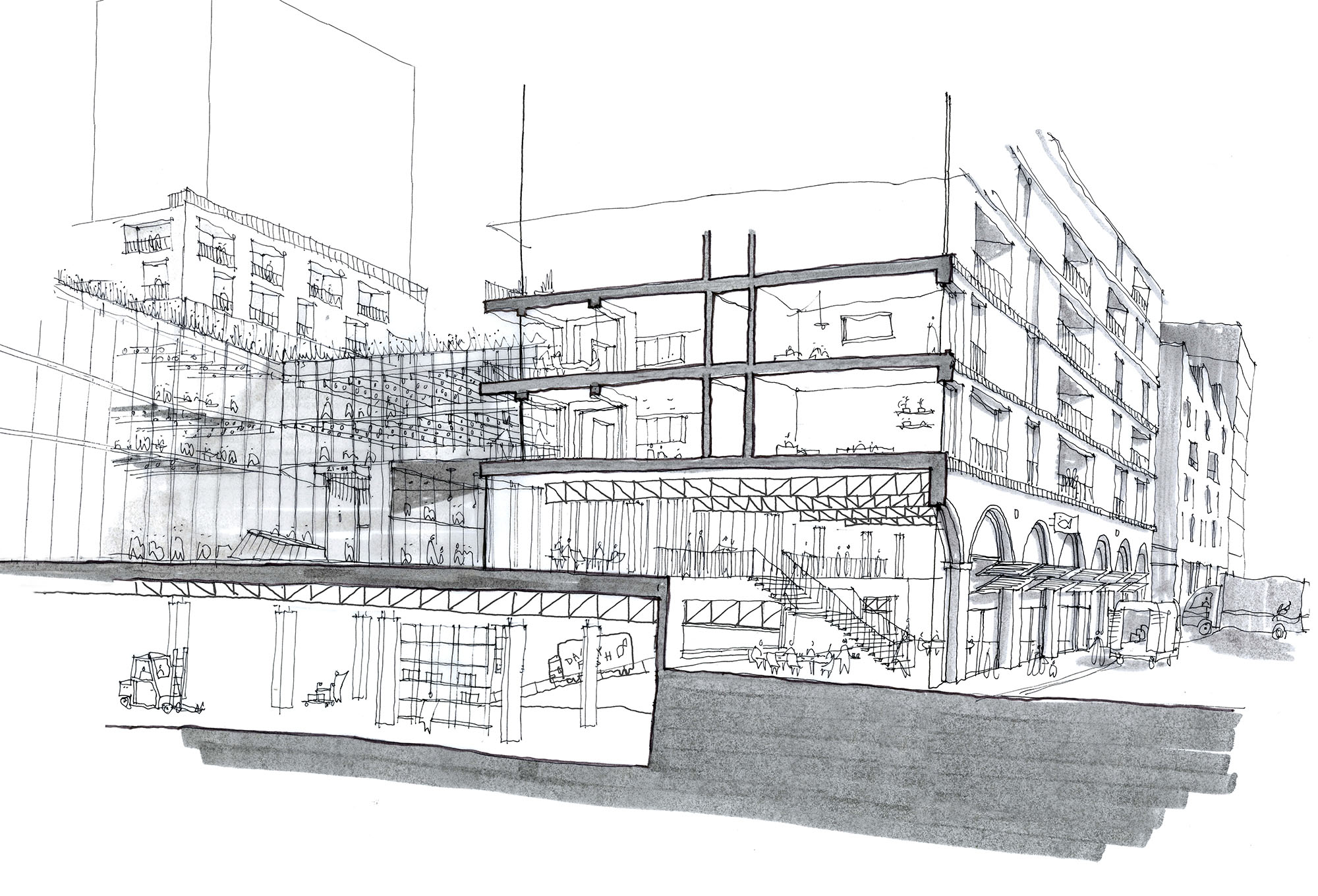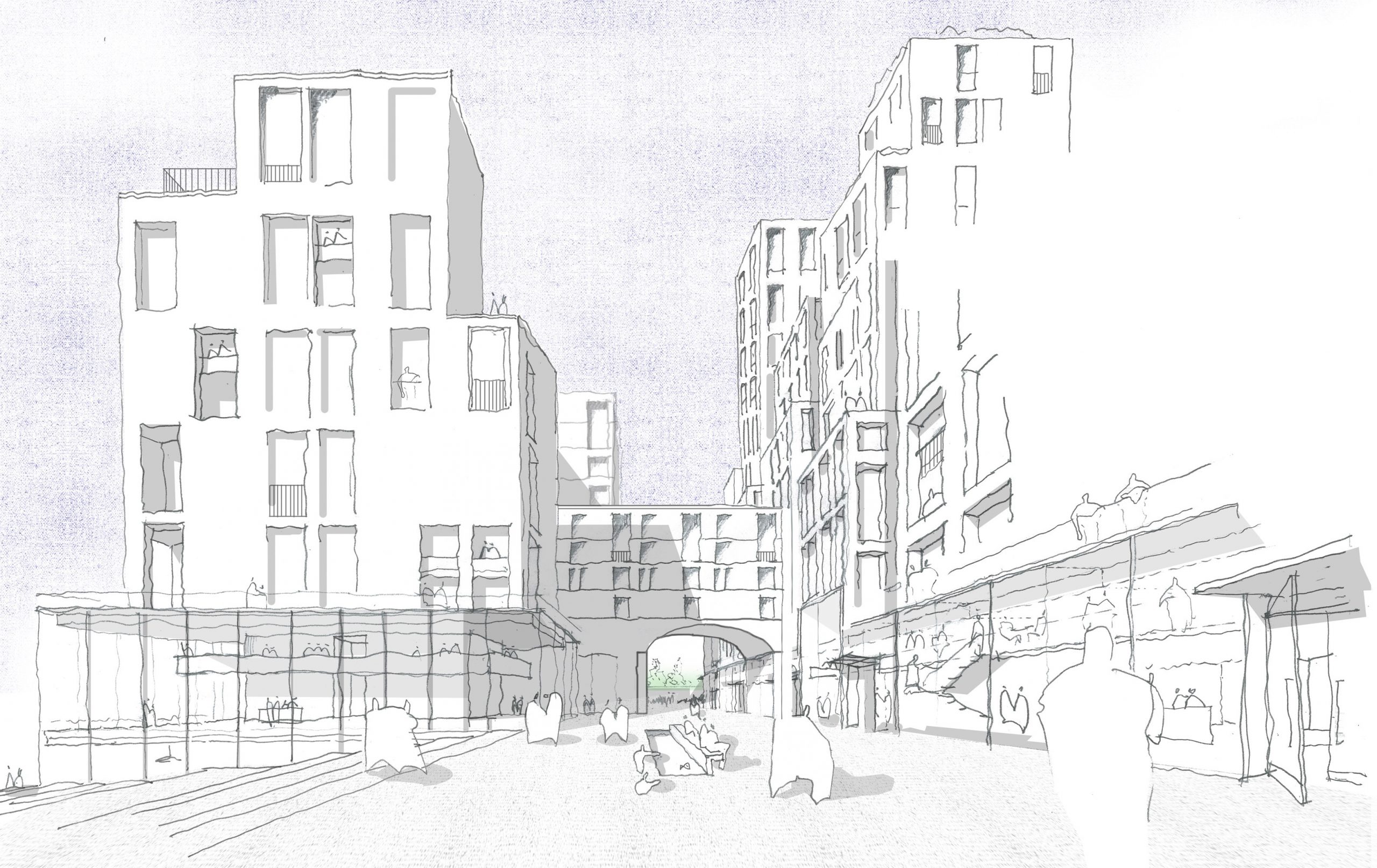 The neighbourhood is located on a 3ha sliver of land bordering the main Kings Cross redevelopment zone and is surrounded by areas which have been undergoing significant redevelopment. The site is home to 30 small businesses and supports c.500 jobs. To support the growth and retention of local businesses, our designs extensively redevelop the lower-grade industrial units, which currently occupy 10,000 sqm, and propose a shift from low-density, single-storey units to multi-level spaces fit for modern industry and treble capacity to 30,000sqm and adding 1000’s of new production jobs to the local economy. As well as strengthening the public realm and the industrial character of the area, our proposal allows for the creation of 750 locally affordable new homes rented directly through Camden Council.