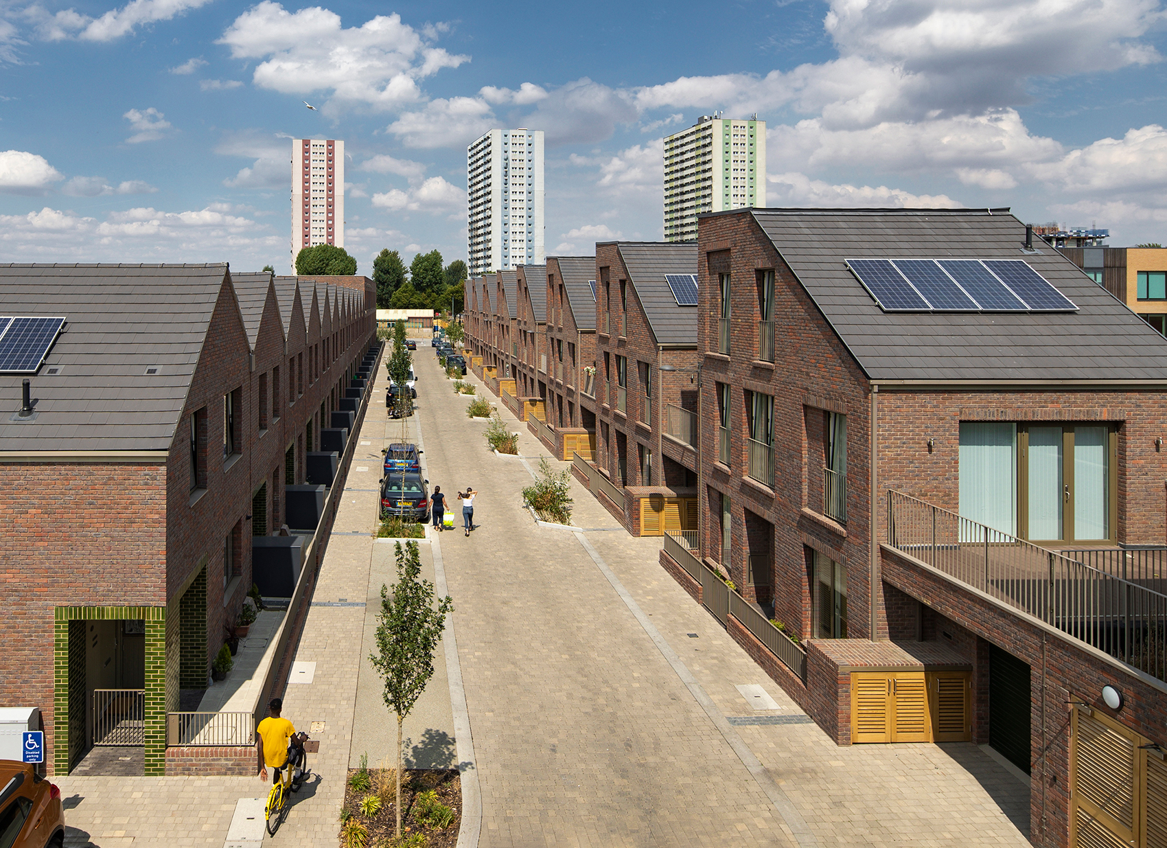 3-storey family homes, with a taller apartment building to the south masking nearby industrial units. The variety of types provided responds to local housing need and also contributes to the distinct character of the street.