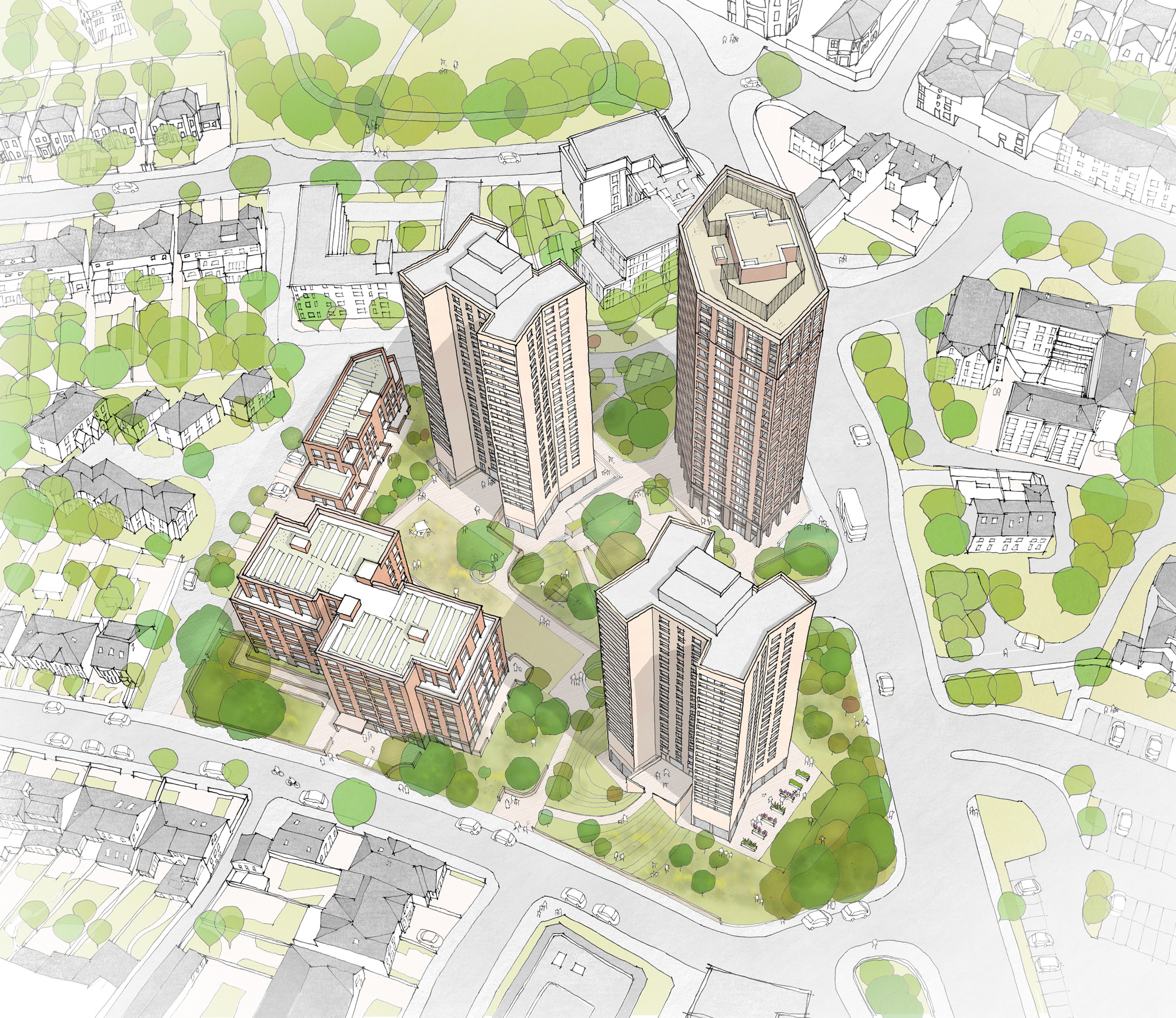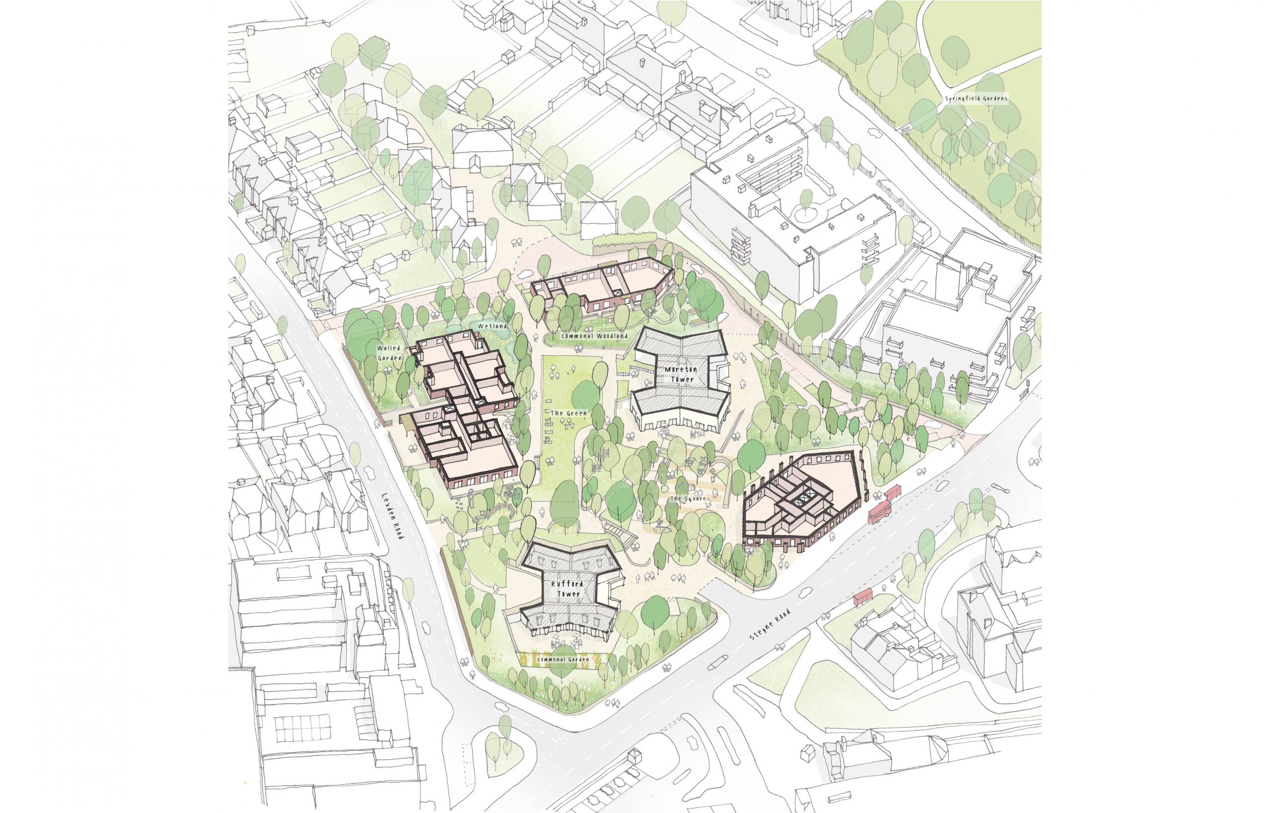 Located adjacent to Acton Town in the London Borough of Ealing, our renewal of the Steyne Estate re-envisions a 1970s housing estate to create a contemporary housing project that responds to the site’s undulating topography, and two 22-storey 1970s Large-Panel-System (LPS) estate buildings; Moreton and Rufford Towers, which will be maintained and upgraded over time.