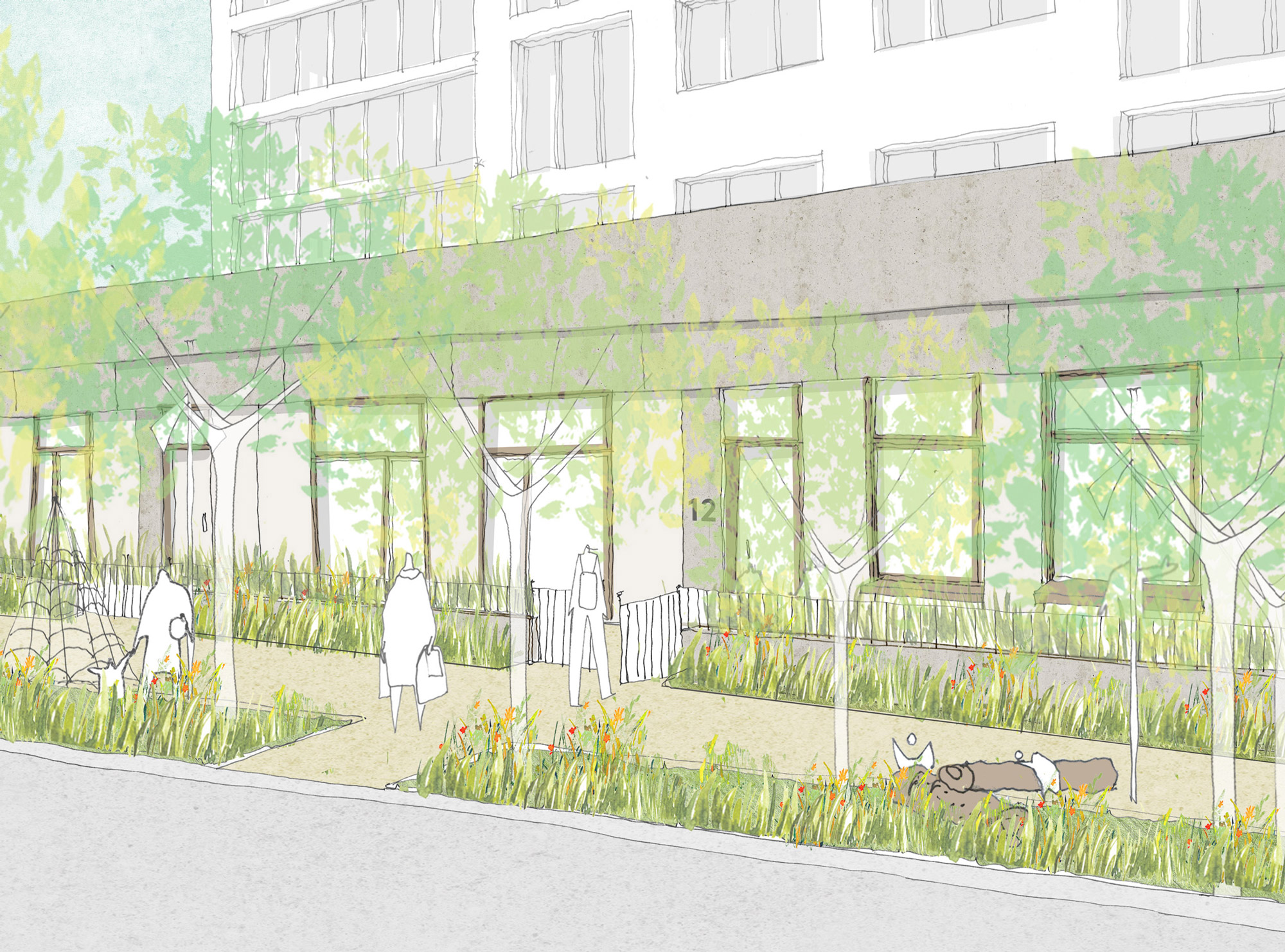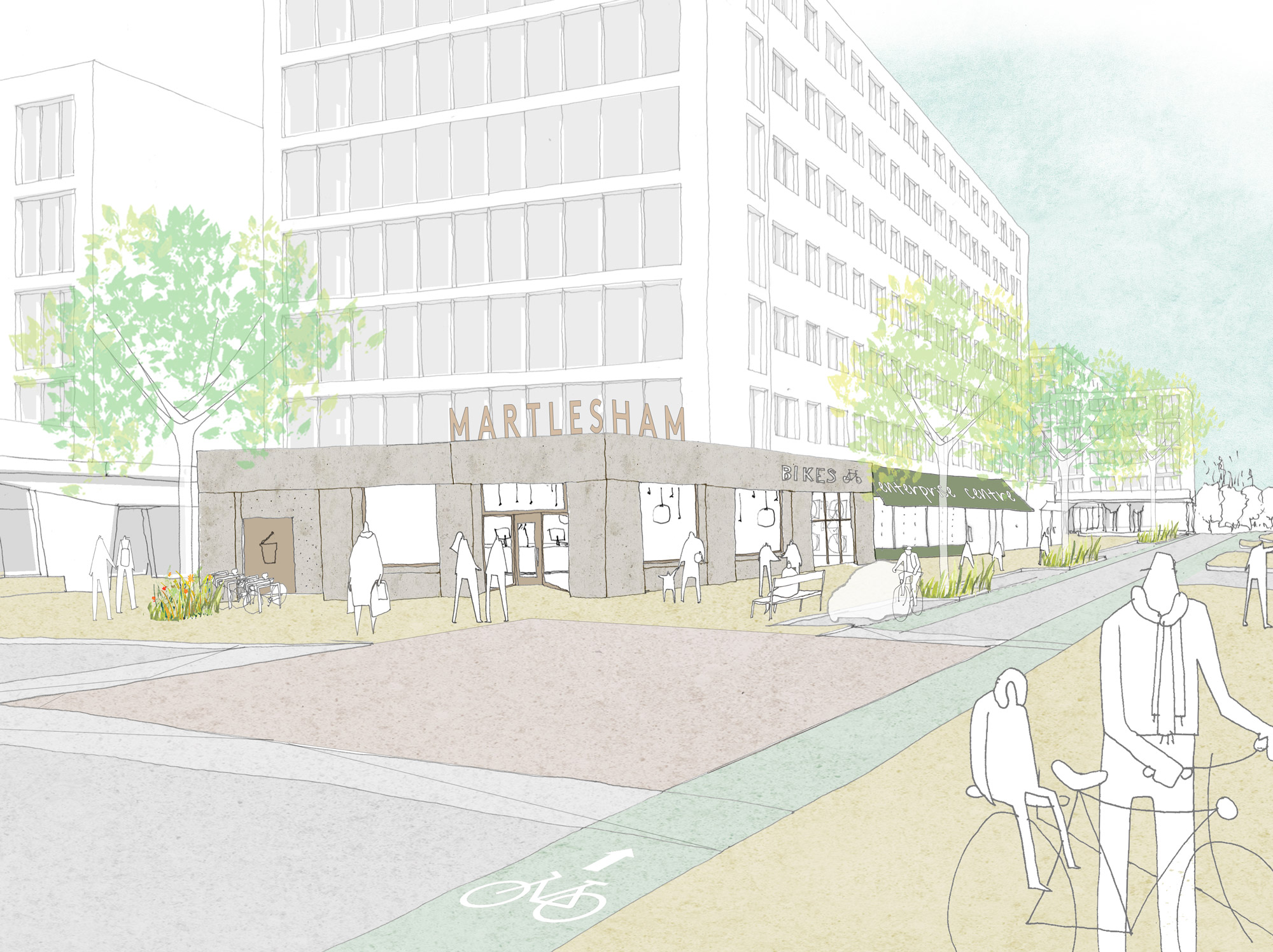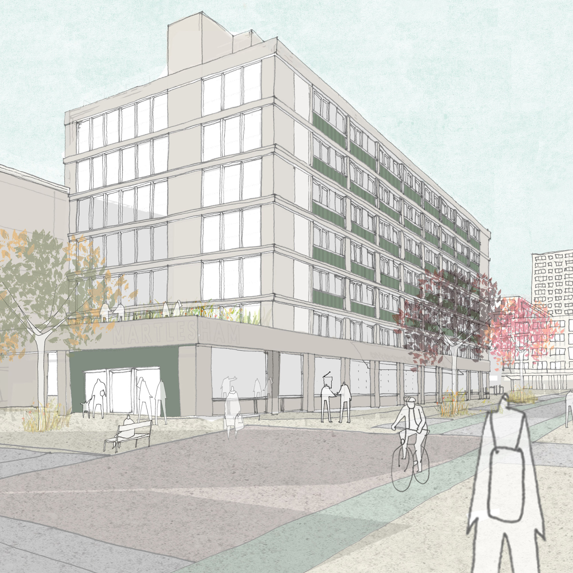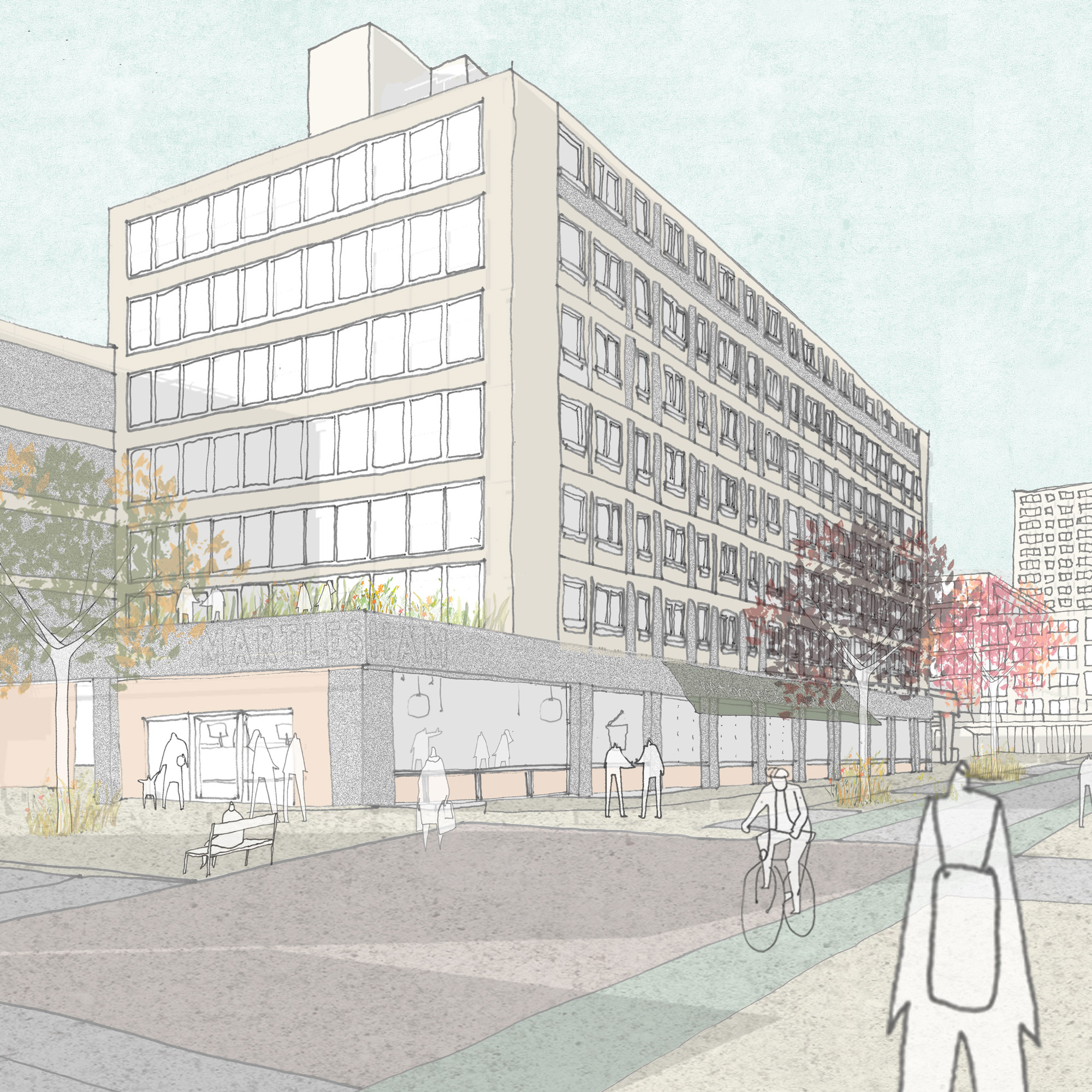 Each of these refurbishment scenarios have been approached holistically, with attention paid to how the existing buildings can be sustainably upgraded and contribute to our wider estate vision, as well as the ways in which their architectural character can be respected and restored. Within these designs, options for converting the open-sided garages to provide a range of new, active uses have been explored to unite the buildings into our wider urban design and public realm strategy.