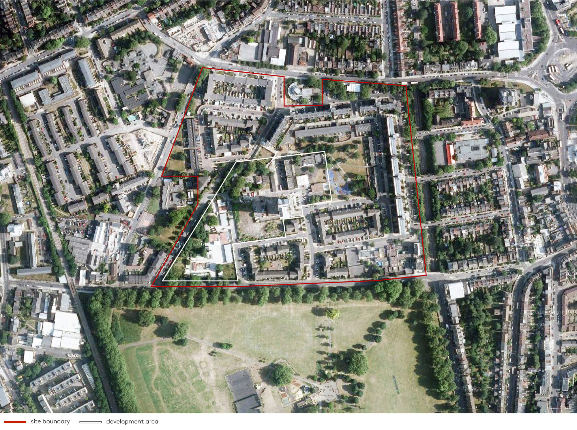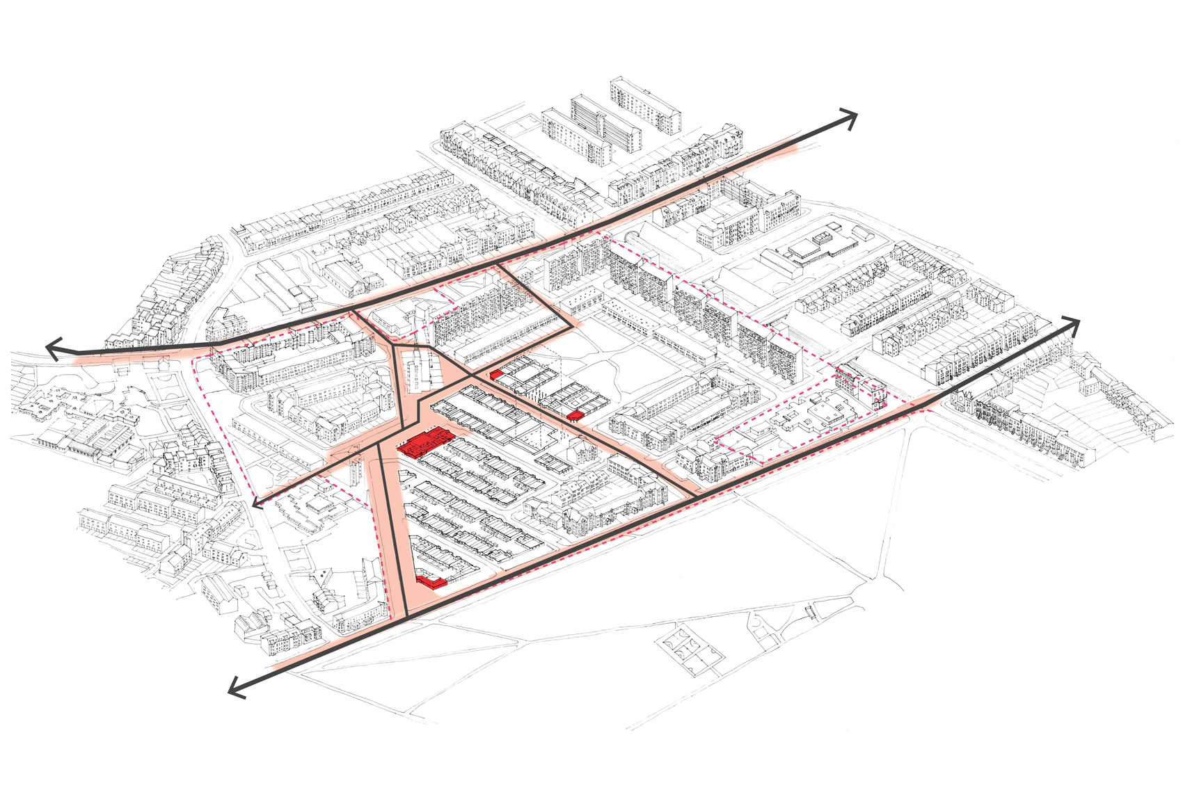 low-density homes. As a result of these changes, a collection of disparate elements emerged, with mixed building types and large unresolved and demolished areas.