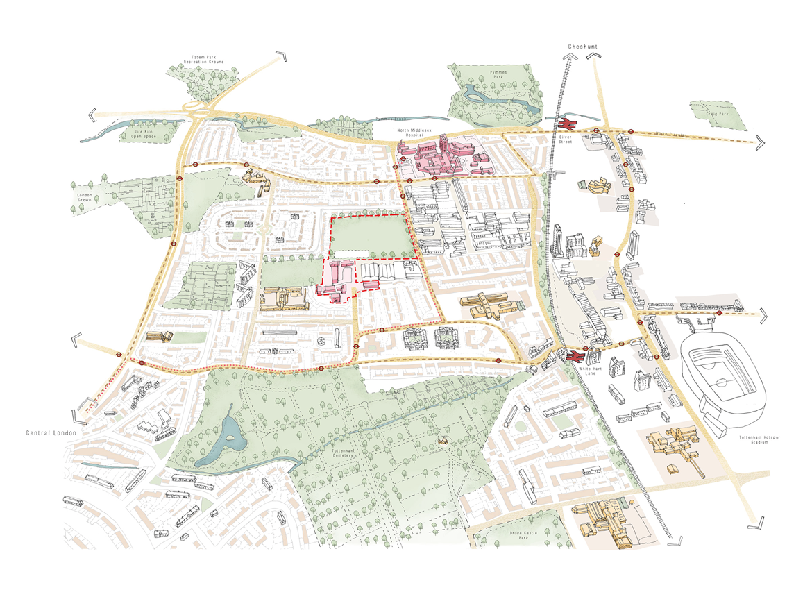 Located at the intersection of two London boroughs, Selby Urban Village re-envisions a disused secondary school and underutilised playing fields in North London into a dynamic mixed-use neighbourhood of approximately 202 homes with new sports facilities, revised open spaces and a diverse collection of community uses which encourage collaboration.
