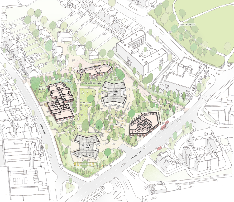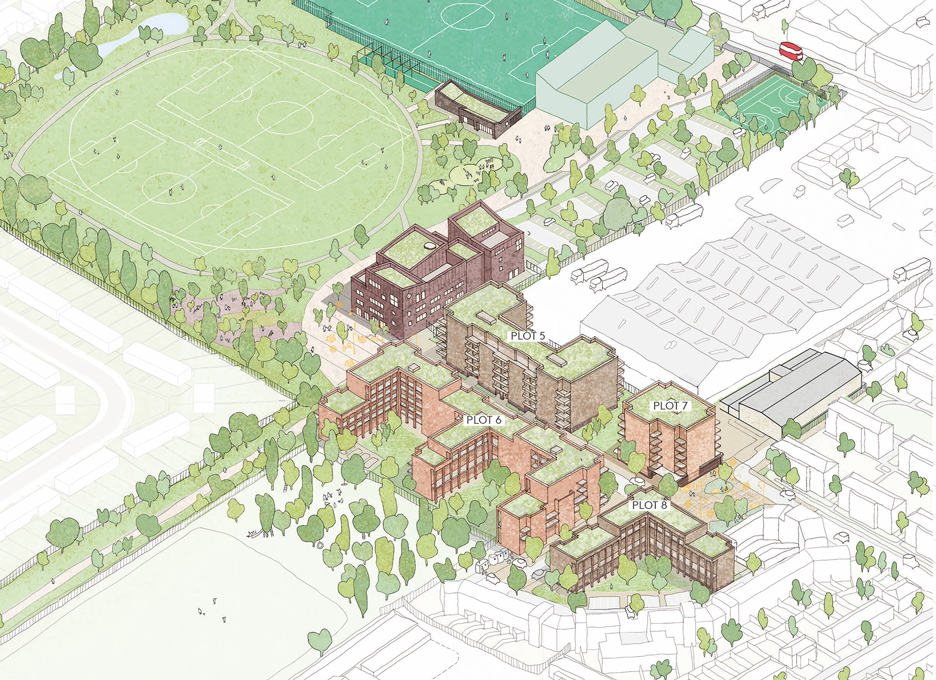 With an emphasis on inclusivity, our masterplan proposals introduce a new range of affordable council homes types and establishes a new Selby Centre with new buildings and spaces designed to enable an overlapping programme of community uses that includes sports and exercise, business, enterprise, childcare, social events, education and play.