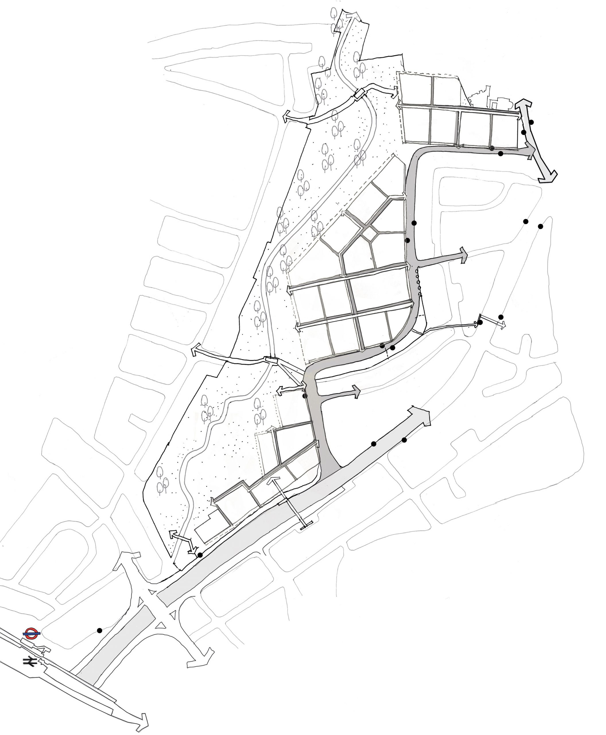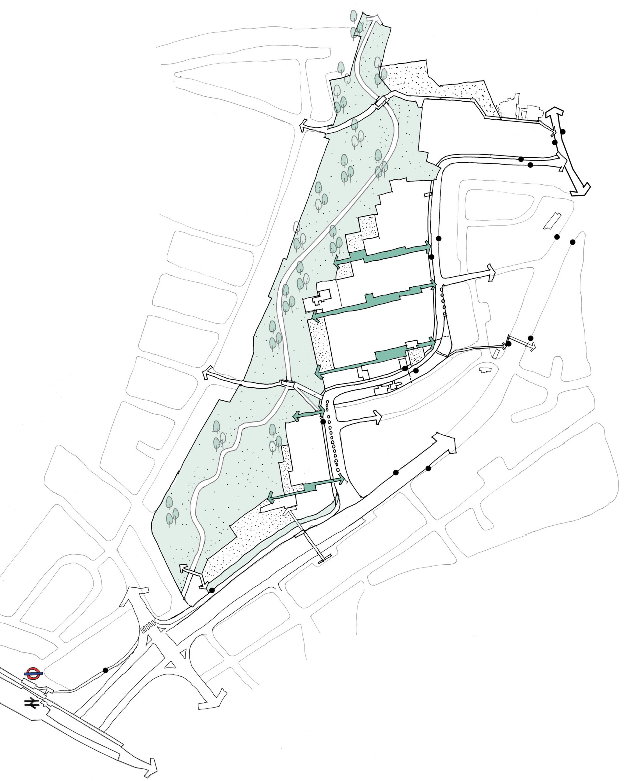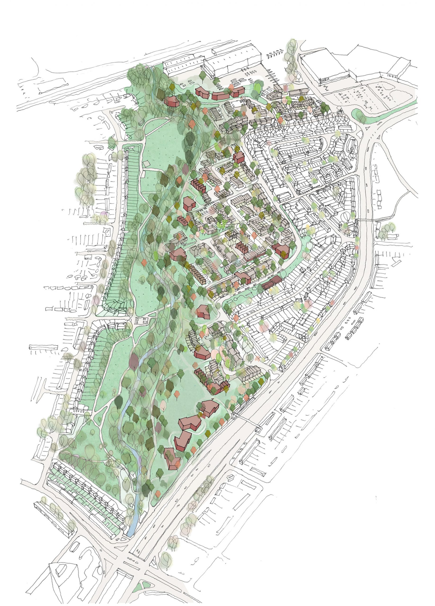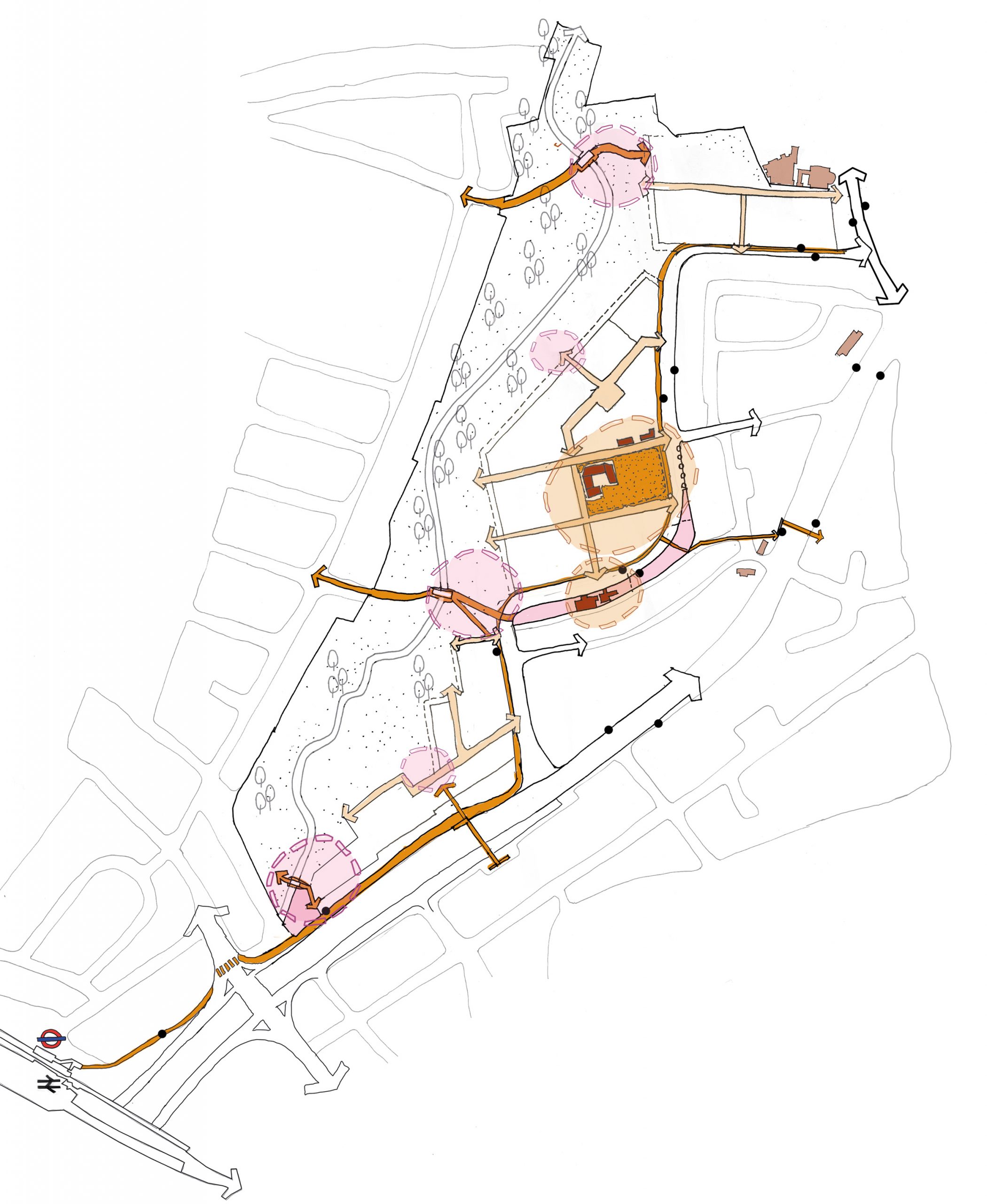 Built in the 1970s, the original estate has long suffered from a fragmented layout leading to ill-defined public spaces and marooned shops and services which are not easily reached on foot. This lack of connectivity within the estate is compounded by its location at the intersection of the busy North Circular motorway to the east and south and by large industry and retail to the north, resulting in an urban island condition.
