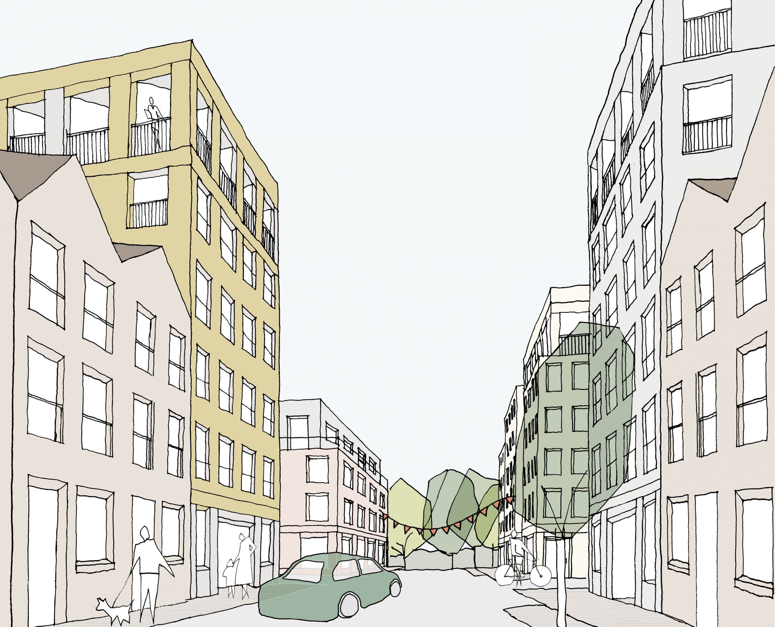 From our two initial masterplan options, plans for strategic infill will be taken forward by the council. In this scenario, 370 new affordable homes will be woven into the existing estate and fill the gaps in the landscape to create not only more dwellings, but a more coherent neighbourhood. We are now leading Phase 1 of the masterplan and are continuing to work with the community to progress designs.